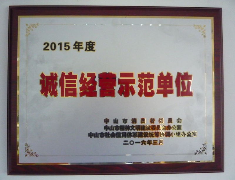 2015年誠(chéng)信經(jīng)營(yíng)示范單位